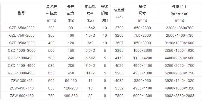 振動給料機技術參數: