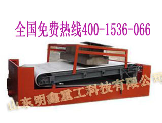 平板磁選機,采用帶式分選結(jié)構(gòu),在整個工作區(qū)域從進料到出料,物料在皮帶的帶動下,可對物料進行多次磁攪拌,同時在水流的沖洗作用下,把不含磁的尾礦除去,帶有磁性的礦物被皮帶輸送到板選機的脫磁區(qū),從而將帶有磁性的礦物通過脫磁裝置脫掉,來完成選礦的過程,整機功率小、處理大,磁場強度高,并達到很好的品質(zhì),能夠獲得更大的效益。