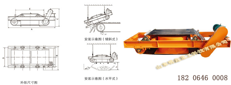 RCDD系列自冷自卸式電磁除鐵器,是一種自動卸鐵的除鐵裝置,是在RCDB、RCDG系列干式自冷電磁除鐵器上增加了一套自動卸鐵機構(gòu),在工作時將吸附除鐵器上的鐵磁性物質(zhì)通過自動卸鐵機構(gòu)將鐵磁性物質(zhì)自動拋出。其特點是適應(yīng)范圍廣,在環(huán)境比較惡劣場合工作穩(wěn)定可靠、使用壽命長、使用方便等特點。 磁路采用計算機模擬設(shè)計,透磁深度大,磁力強。 全密封結(jié)構(gòu)、防塵、防潮、耐腐蝕。 自動卸鐵,滾筒采用腰鼓型結(jié)構(gòu),具有皮帶自動糾偏,維護方便。 電源采用低壓供電模式,故障率低。